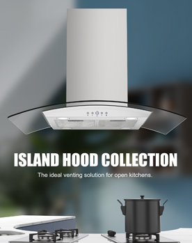 The island hood is designed for big kitchenand the island hood always featured with highsuctionand hig h-end switch.